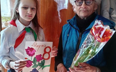 Тимуровский отряд «Доброделы» пионерской дружины имени Лизы Чайкиной Клястицкой школы поздравил Анну Александровну Печкурову, малолетнего узника времён Великой Отечественной войны, с праздником 8 марта. Ребята пожелали Анне Александровне крепкого здоровья, хорошего настроения, счастья и благополучия! Надежда Сергеевна ШИЛОВЕЦ, педагог-организатор, Россонский район, Клястицкая школа имени В. А. Хомченовского.