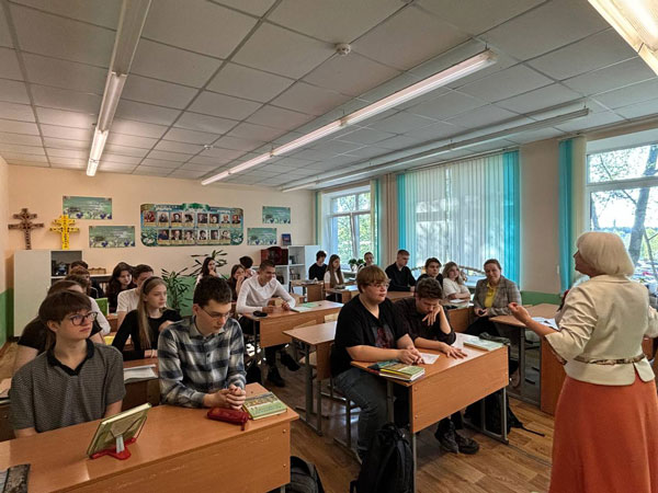 На уроке писательница рассказала, что свое первое произведение опубликовала в 50 лет, как написала более 700 стихотворений и прочитала некоторые из них: «Нашым нашчадкам», «Бабулін агенчык»
