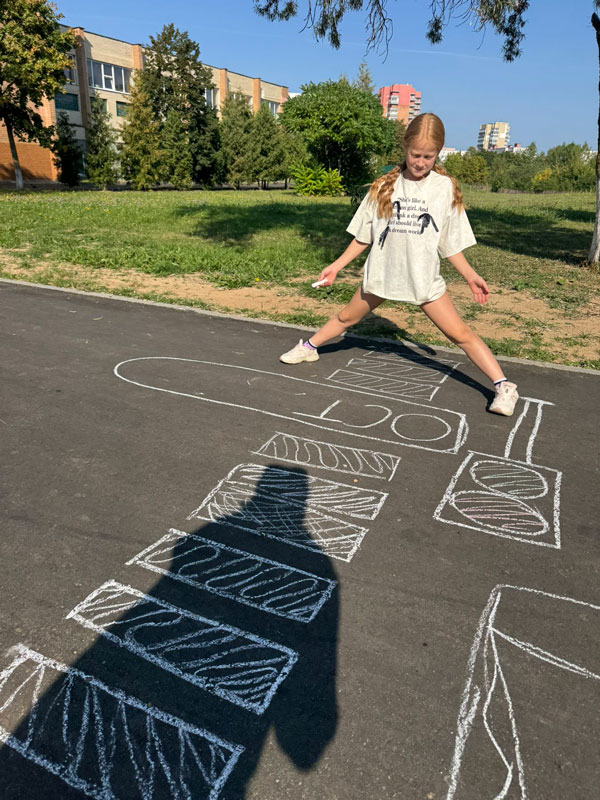 В школе особое внимание уделяется обучению детей правилам дорожного движения. Для этого с ребятами проводятся разъяснительные беседы, практические занятия с имитацией дорожных ситуаций. А для закрепления знаний – викторины, конкурсы и выставки рисунков на тему правил дорожного движения. В шестой школьный день прошёл конкурс рисунков на асфальте «Мы рисуем ПДД» среди учащихся 5-х классов. Ребята с удовольствием рисовали мелками, комментировали рисунки, делились знаниями правил дорожного движения. Пятиклассники рисовали различные дорожные знаки, светофоры, машины. Рисунки получились яркими, оригинальными и содержательными. Проигравших по итогам конкурса не было, победили все! Участники показали отличные знания правил дорожного движения, все ещё долго будут наслаждаться яркими рисунками на асфальте, при этом лишний раз задумаются о соблюдении правил дорожного движения.