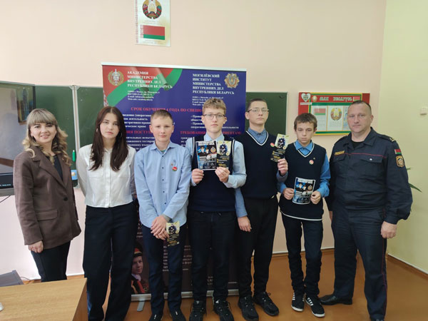 Ребята познакомились с порядком приёма в учреждение образования «Специализированный лицей Министерства внутренних дел Республики Беларусь», заинтересованным вручены буклеты, организован просмотр видеоролика.