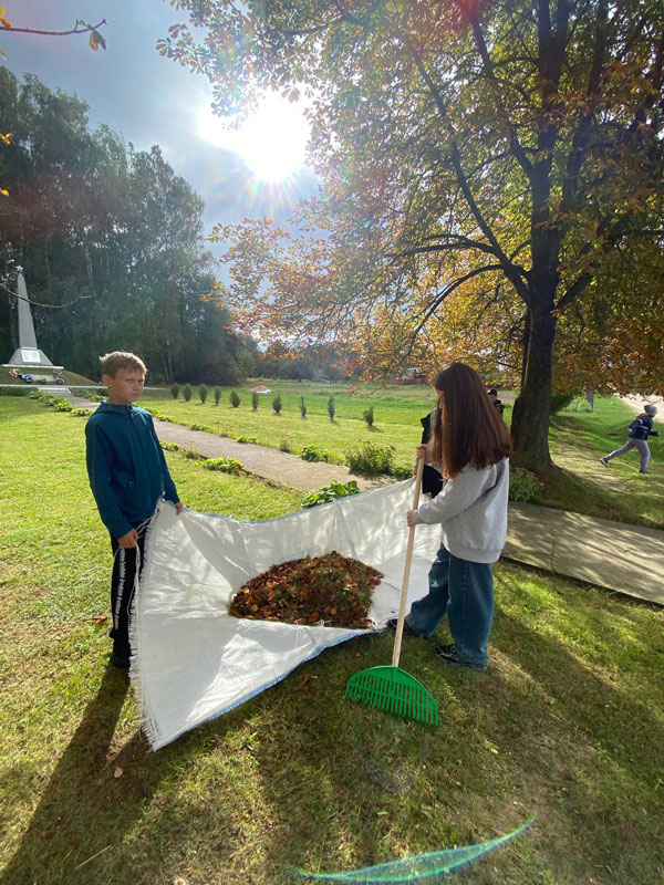 Навучэнцы, узяўшы патрэбны інвентар, адправіліся на добраўпарадкаванне тэрыторыі каля помніка воінам загінуўшым у гады Вялікай Айчыннай вайны ў вёсцы Данілавічы. Вучні ведаюць, што дзякуючы ім, сёння жывуць пад мірным небам. І для іх важна памятаць пра тыя жахлівыя падзеі.