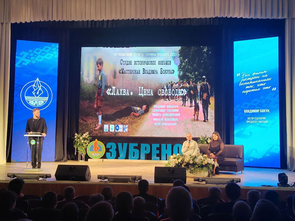 24 сентября в НДЦ «Зубрёнок» в рамках гражданско-патриотической кадетской смены учащихся Союзного государства «За честь Отчизны» состоялся просмотр художественно-документального фильма «Лахва. Цена свободы» и творческая встреча с создателем фильма Владимиром Викторовичем Бокуном – директором студии исторических фильмов, а также с Марией Игоревной Радюк, исполнительным продюсером и членом съёмочной группы.