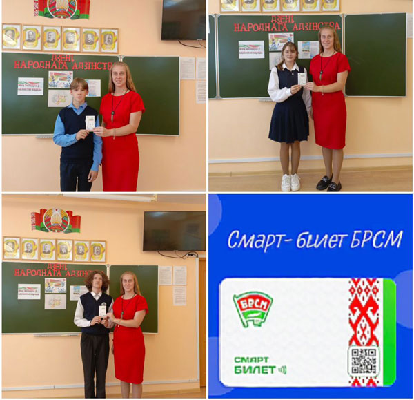 В торжественной обстановке ребятам были вручены смарт-билеты БРСМ, преимущества которых является уведомления о полезной информации и последних новостях, возможность начисления системы баллов за участие в мероприятиях, регистрация на мероприятия через приложение, поиск единомышленников и многое другое.