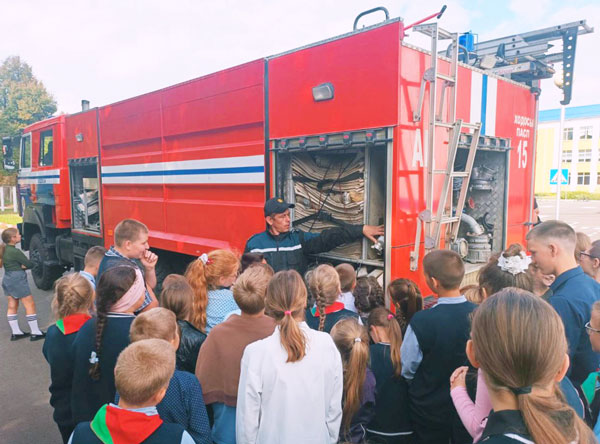 Самым зрелищным событием дня стал приезд настоящих героев – спасателей из РОЧС! Большая красная пожарная машина сразу же стала центром внимания. Огнеборцы не только рассказали о правилах пожарной безопасности, но и наглядно показали, как правильно пользоваться первичными средствами пожаротушения. Ребята с большим интересом исследовали отсеки машины, задавали вопросы пожарным и даже смогли посидеть в кабине героев, которые спасают жизни. Была проведена тренировочная эвакуация из здания школы.