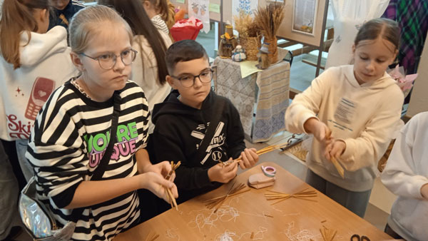 Далее школьники посетили центр ремёсел и традиционной культуры «Спадчына» – изумительное место, где развивается самобытность белорусов как нации. В центре имеется кукольный театр батлейка, старинное ткачество, музей быта белорусов XVIII–XIX веков. В центре девчонок и мальчишек научили изготавливать традиционную соломенную «Птицу счастья» – символ благополучия и удачи. Считается, что такая птица, сплетённая своими руками, приносит в дом радость и гармонию.