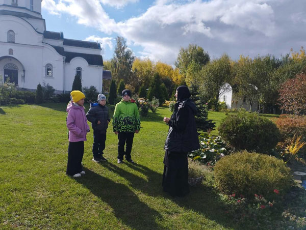 К сожалению, некоторые люди относятся к животным плохо. Потому число животных на территории монастыря не уменьшается. Ребята лично отдали корм для животных и покормили кошку с котятами. Потом дети посетили храм на территории монастыря, где размещён образ Борколабовской Божьей Матери. Ребятам очень понравилась история об этой чудотворной иконе.