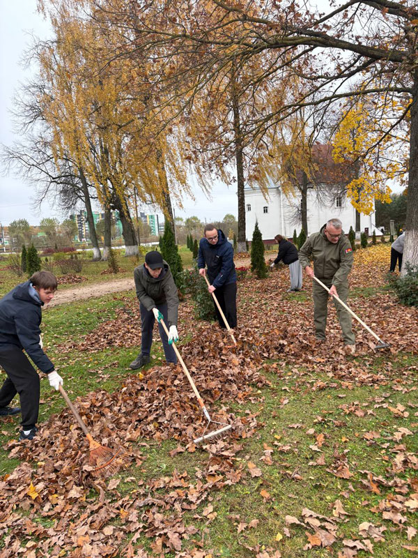 Юные парламентарии совместно с представителями Оршанской спецавтобазы и Оршанского льнокомбината привели в порядок территорию храма: убрали опавшую листву, обрезали кустарники и деревья. Несмотря на ветреную погоду, работа кипела, а вместе с ней царила и особая, добрая атмосфера совместного труда.