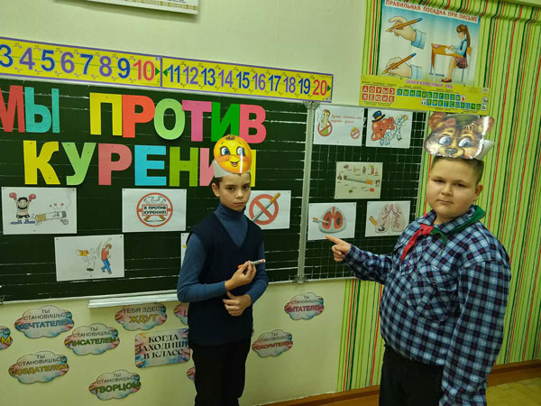 В рамках реализации инновационного проекта «Внедрение модели формирования культуры здорового образа жизни, социально безопасного и ответственного поведения учащихся в современном образовательном пространстве» и профилактики курения во 2 и 5 классах Хоновской средней школы Галина Михайловна Пусикова провела профилактическое занятие «Мы против курения», направленное на формирование негативного отношения к курению средствами сказкотерапии.
