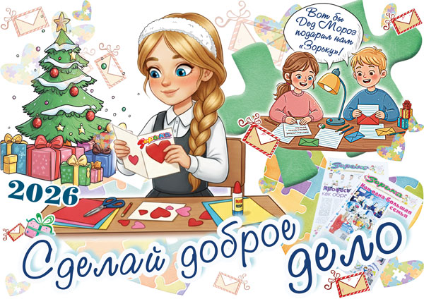 В редакции республиканской газеты для детей и подростков «Зорька» уже стало доброй традицией в преддверии новогодних и рождественских праздников проводить благотворительный марафон «Доброе дело». Каждый из вас может стать добрым волшебником и присоединиться к общему доброму делу – познакомить с газетой «Зорька» воспитанников детских домов и школ-интернатов нашей страны и сделать зимние каникулы для ребят интересными и познавательными. Время бежит быстро и незаметно, оглянутся не успеешь, как придёт пора праздников. Не дай новогодней суете помешать тебе сделать доброе дело.