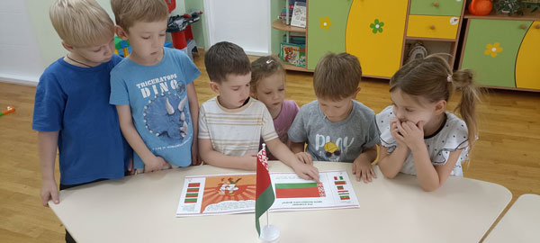 Дошкольники должны знать и уважать символику своей страны. В этот день ребята получили представления о государственных символах Республики Беларусь, узнали о значении цветов на орнаменте Государственного флага, об элементах Государственного герба, отражающих неповторимость и богатства культурных традиций быта и природы Беларуси, о Государственном гимне – главной песне нашей Родины. Такие занятия помогают ребятам приобрести новые знания, воспитать в них патриотический дух, чувство гордости и любовь к своей Родине. Ребята сделали для себя очень важный вывод: каждый гражданин своего государства должен быть прежде всего, патриотом уважать государственную символику и знать историю родной страны.