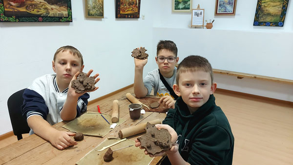 Вместе с классным руководителем посетили Полоцкий районный центр ремёсел и национальных культур, где нам предложили поучаствовать в мастер-классе по лепке из глины.
