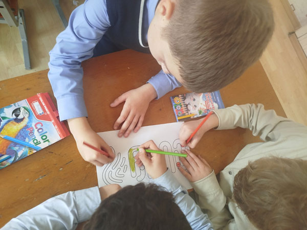 Выполняя первое, октябрята посмотрели мультфильмы БРПО, поиграли с чат-ботом, познакомились с техникой дудлинг, нарисовали рисунки «Мы – команда БРПО!», придумали каждому персонажу имя, суперсилу и девиз.