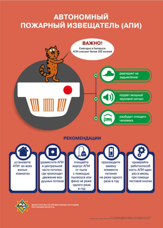 Автономный пожарный извещатель – это своего рода будильник, который срабатывает от появления дыма. При обнаружении задымления АПИ подает громкий прерывистый звуковой сигнал с постоянным свечением светодиода красного цвета.
