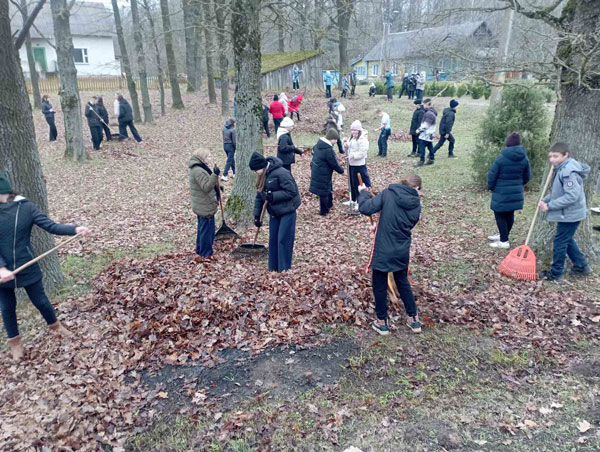 Опавшие листья, превращались в аккуратные кучи, готовые к вывозу. Чувствовалось, что ребята не просто выполняют поручение, а искренне хотят внести свой вклад в сохранение своей малой родины. Ведь этот парк – место, где любят проводить время и местные жители, и гости агрогородка Ходосы.