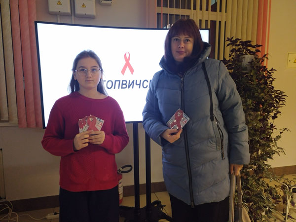 С целью привлечения внимания школьников и взрослых к проблеме ВИЧ/СПИДа, формирования ответственного отношения к собственному здоровью и поддержки людей, живущих с этим заболеванием, ребята раздавали символические красные ленточки с листовками.