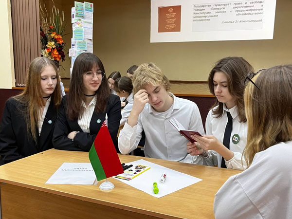 В школе № 26 г. Гродно прошёл информационный час в рамках информационно-образовательного проекта ШАГ по теме «Быть достойным гражданином Республики Беларусь – значит грамотно пользоваться своими правами, честно и добросовестно исполнять свои обязанности» (Гарантии государства по защите прав и свобод граждан. Конституционные права и обязанности гражданина Республики Беларусь. Обязанности учащихся. Права ребенка. Взаимосвязь прав и обязанностей).