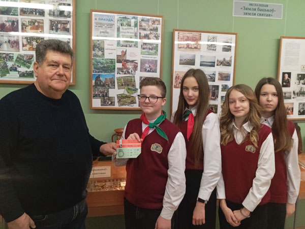 Уладальнік незвычайнага прадмета – кіраўнік па ваенна-патрыятычным выхаванні нашай школы Вітольд Вітольдавіч Паўлюкевіч (на фота злева) – чалавек пільны, неабыякавы да развіцця музейнай і краязнаўчай справы ва ўстанове адукацыі. Ён не адзін раз радаваў членаў савета музея цікавымі знаходкамі і захапляльнымі гісторыямі, звязанымі з мінулым нашай Радзімы. І ў гэты раз алімпійскі білет, паабяцаны напярэдадні сябрам музея як падарунак на 45-годдзе правядзення Алімпійскіх гульняў у Маскве, выклікаў відавочную цікавасць у дзяцей.