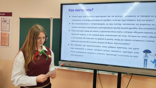 В Хоновской школе Марина Юрьевна Пиндюрова провела с учащимися 8–9-х классов интерактивный тренинг «Как принять хорошее решение» с использованием видеороликов по вопросам здорового образа жизни, социально безопасного и ответственного поведения разработанных при поддержке ИИТО ЮНЕСКО.