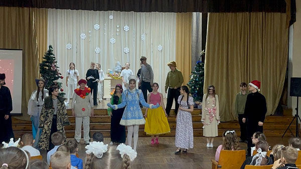 В актовом зале светло и шумно. Здесь кипит работа, но это не просто репетиция по сценарию. Здесь старшеклассники в костюмах советуются с одетыми в белое пятиклассницами-«осколками», создавая ту самую волшебную атмосферу. В школе полным ходом идёт подготовка к главной новогодней традиции – «Новогодней сказке».
