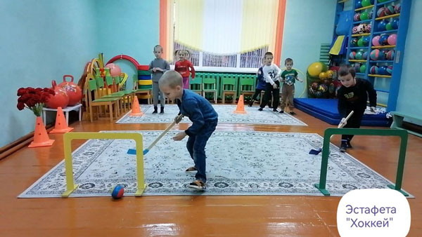 Ребята соревновались в эстафетах: «Лыжные гонки», «Зима», «Хоккей», «Переправа по льдинам», «Построй горку».