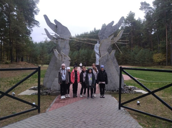 Экскурсия началась с рассказа учителя о том, что в 1942 году немцы ликвидировали столинское гетто. Огромный котлован, вырытый до войны советскими заключенными под подземные ангары будущего аэродрома, стал могилой для 12,5 тысяч человек. В урочище Стасино были расстреляны евреи, белорусы, украинцы и русские. Сегодня на месте расстрела, посреди леса, стоят два памятника. Ребята также узнали о том, как в это время страдали семьи, сохранившие свои жизни, и о важности сохранения памяти о тех, кто не вернулся с войны. Учитель подчеркнул, что такие визиты помогают осознать важность мира и ценность человеческой жизни.
