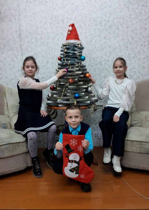 Именно такая ёлка украсила библиотеку школы № 5 г. Мосты. Для её создания понадобилось около 100 книг. Необычная ёлка сразу привлекла внимание учащихся и педагогов.