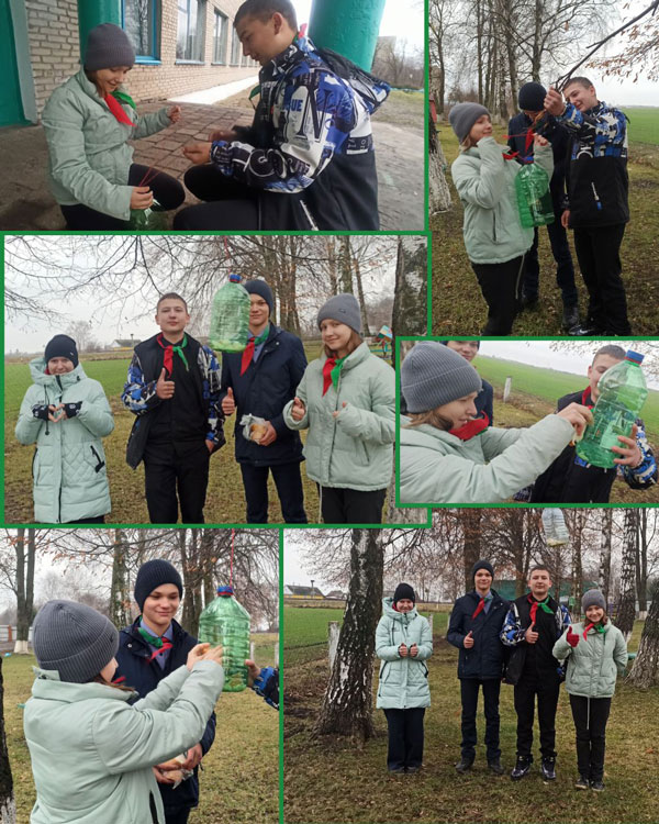 В Малешевской базовой школе ребята сделали 6 кормушек! Все кормушки мы повесили вдоль забора на игровой площадке. В результате совместного труда и творчества детей и взрослых были созданы самые разнообразные кормушки. Фантазии не было границ: деревянные дворцы, коробки, пластиковые бутылки и разнообразный природный материал.