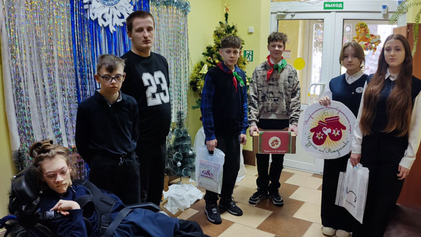 Взяв хорошее настроение ребята отправились в центр коррекционно-развивающего обучения и реабилитации в городской посёлок Большая Берестовица для поздравления и вручения воспитанникам рождественских подарков.