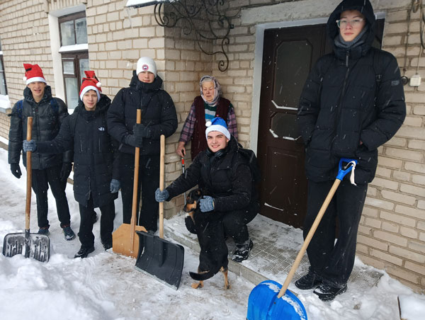 Когда наступило время снегопадов, дружный десант членов ОО «БРСМ» школы помог Наталье Сергеевне с расчисткой двора от снега. После праздников в дом к пенсионерке заглянули юные тимуровцы. Они убрали ёлку и навели порядок во дворе.