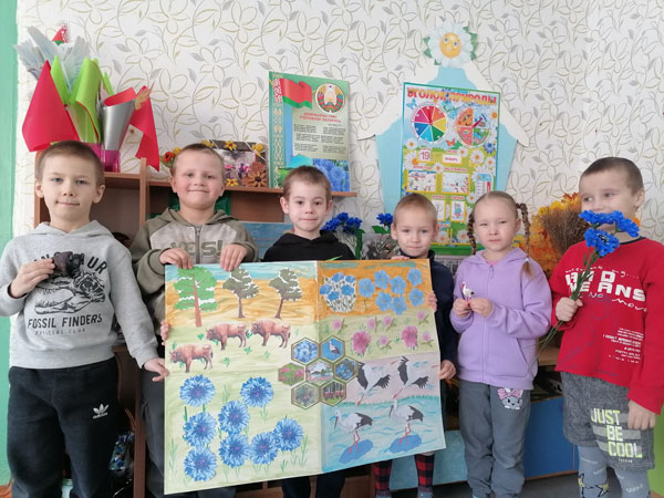 Проявив творчество, дошкольники создали плакат «Природные символы Республики Беларусь».