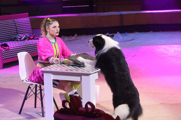 «Дуэт «Intention» в лице Мария Болдыревой и Руслана Семенцова представил номер «Партерная рамка». Мария, закрыв глаза тёмной повязкой, выполняла сложнейшие трюки в воздухе, а Руслан её ловил. Александра Емелина с дрессированными собачками, сначала с большой, а затем уже с совсем маленькой и средней собачками продемонстрировала очень милый номер.