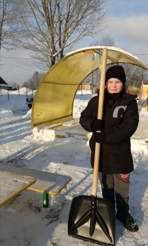 Сначала подумал, что уборка снега – сложно и скучно. Но оказалось совсем наоборот! Взяли большие лопаты и стали расчищать дорожку около групповых окон. Потом принялись освобождать площадку возле детской горки и песочницы.