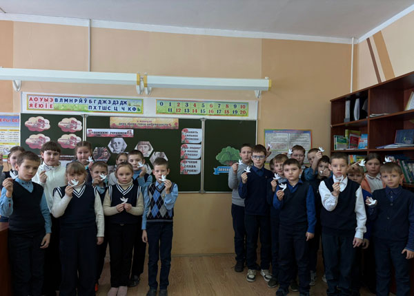 Завершился час трогательной творческой акцией. На стенде уже было изображено большое «Дерево жизни» с раскидистыми ветвями. Каждый ученик получил бумажного голубя — символа мира. На крыльях птиц ребята написали добрые пожелания: «Пусть будет мир!», «Спасибо героям», «Мы помним». По одному они подошли к дереву и прикрепили своих голубей. Ветви наполнились белоснежным оперением — дерево «ожило», став живым символом связи поколений и надежды.