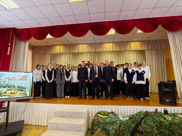 Особый отклик в сердцах зрителей нашла литературно-музыкальная композиция, подготовленная учащимися Академии МВД, которые были приглашены в нашу школу. После, минутой молчания все присутствующие почтили память земляков, не вернувшихся с афганской войны.