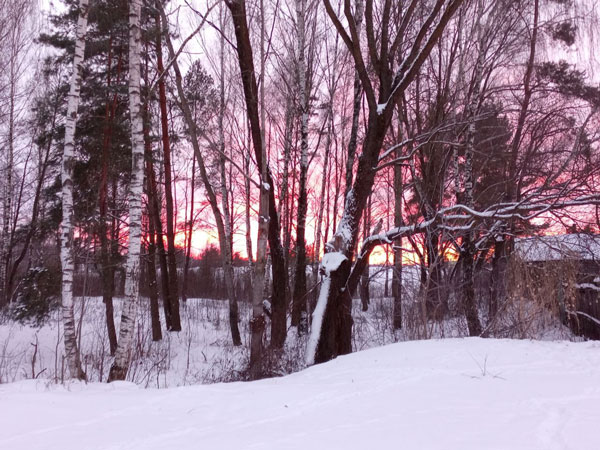 С каждой прогулкой появлялось всё больше шуток и смеха, было всё веселее и веселее. Однажды, когда гуляли, увидели невероятно красивый малиновый закат. Запечатлела его на фото, которыми делюсь с читателями любимой газеты.