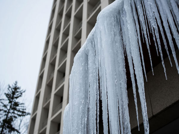 - Держитесь на расстоянии не менее 1-3 метров от стен. Чем выше здание, тем дальше может отлететь снежная глыба при падении, а сосулька, весом в несколько сотен грамм, бьет с силой пушечного ядра. Идеальная траектория движения – по центру тротуара, подальше от карнизов и балконов.