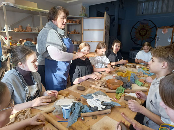 На гэты раз у фокусе ўвагі маладога пакалення быў майстар-клас па кераміцы. Занятак, па меркаванню юных рамеснікаў, стаў для іх самым хвалюючым, бо праца з глінай выклікала як прыемныя ўражанні, так і невялікія пытанні на пачатку.