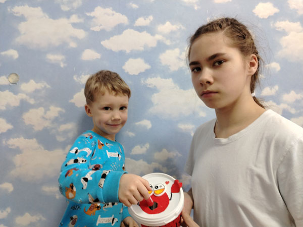 В нашей семье мы сортируем отходы. И для использованных батареек придумали игру «Покорми краба». Из пустого маленького ведёрка (у нас из-под шоколадной пасты) сделали контейнер для сбора батареек. Приклеили глазки, из красного картона получились клешни, вырезали «рот» – и готово! Кормим краба использованными батарейками. В такой простой и доступной форме младшему брату Ване рассказали о сортировке отходов. А в детский сад сделали большую батарейку-контейнер. Потом брат отнесёт всё что собрали в пункты сбора батареек. Сейчас они есть почти во всех магазинах.