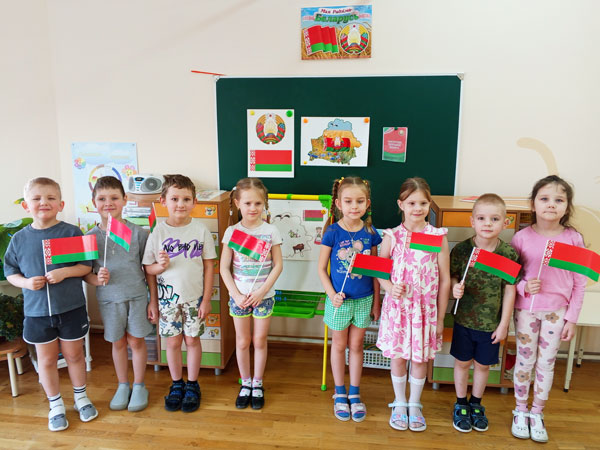 На занятии с воспитанниками побеседовали о государственном празднике – Дне Конституции Республики Беларусь. Ребята узнали, что Конституция – самая главная книга, в которой прописаны права и обязанности для всех граждан нашей страны. С интересом слушали рассказ об истории её создания. Рассуждали о том, что значит быть хорошим гражданином своей страны. Закрепили представления о государственных и природных символах Республики Беларусь, рассмотрели паспорт гражданина Республики Беларусь, поиграли в дидактические игры: «Собери карту из частей», «Найди флаг Республики Беларусь», оформили стенгазету «Моя Беларусь».