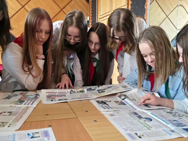 Ребята с интересом изучали страницы газеты, которая сегодня представляет собой современное медийное пространство, которое сохраняет лучшие традиции детской прессы. Пионеры-лидеры не просто просматривали заголовки, а вдумчиво читали все материалы, которые могут быть полезны для их общественной деятельности.