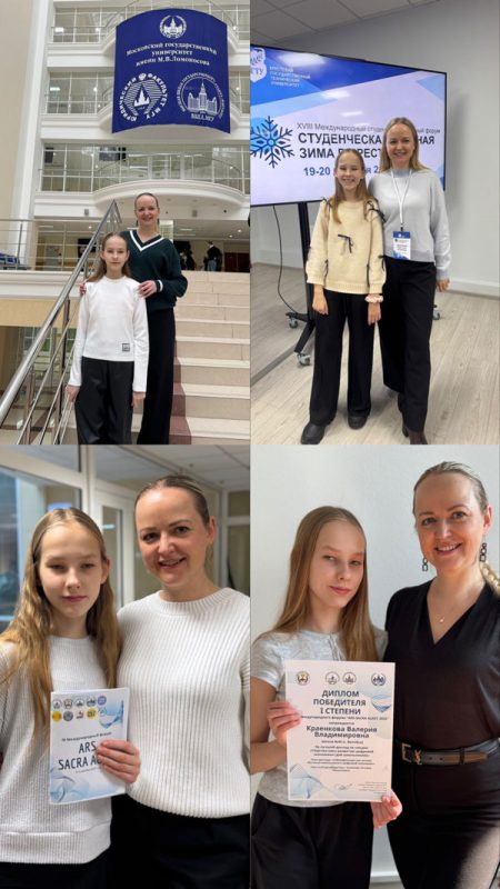 Представляете, в свои 12 лет, я уже два раза была в Московском государственной универтисете имени М. В. Ломоносова, выступала на конференциях и даже побеждала. И все это благодаря маме. Она для меня не просто родитель, она моя лучшая подружка. Учит меня никогда не сдаваться, идти к своей цели, даже если очень сложно.
