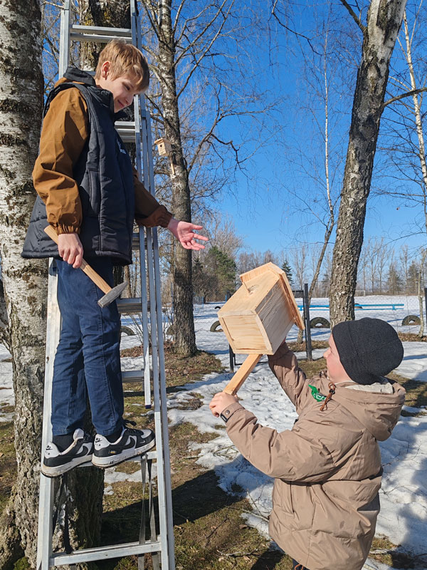 Девчонки тоже не остаются в стороне: помогают выбирать лучшие места для птичьих домиков и следят за порядком вокруг.