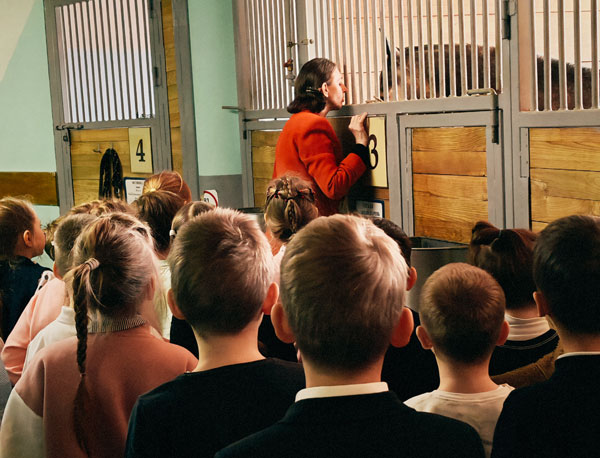 В конюшне всех ждало ещё одно открытие. Лошади оказались очень нежными и ласковыми. Красавцы с блестящими гривами аккуратно брали морковку из рук дрессировщицы и благодарно кивали головами. Нам разрешили погладить животных, и многие ребята впервые в жизни так близко видели этих грациозных созданий.