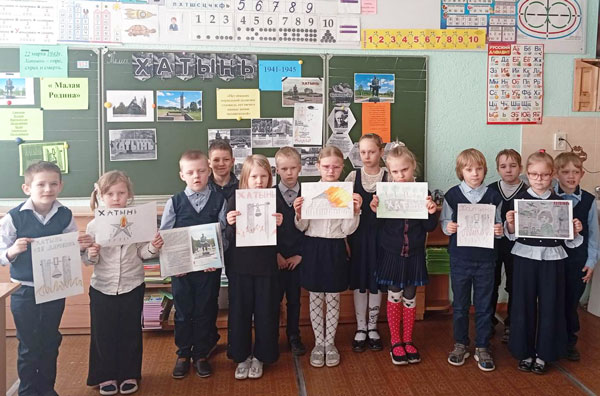 Первоклассники узнали, что 22 марта 1943 года – трагическая дата в истории Беларуси. Деревня была уничтожена нацистскими карателями почти со всеми её жителями – немецко-фашистские захватчики заживо сожгли 149 человек, включая 75 детей и младенцев.