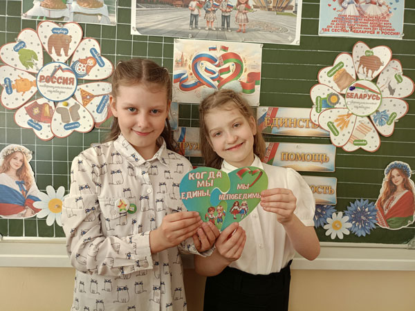 На занятии школьники в доступной и увлекательной форме познакомились с главными вехами создания Союзного государства. Ребята узнали, что много лет назад – 2 апреля 1996 года – Беларусь и Россия договорились всегда быть рядом, помогать друг другу и вместе строить общее будущее. Особое внимание уделили духовным ценностям, которые объединяют белорусов и россиян: уважение к старшим и любовь к своей семье; память о героическом прошлом; стремление к миру, добру и созиданию.