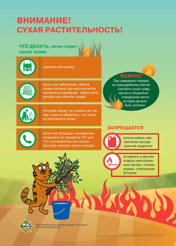 - Палы травы – опасная традиция, которая идёт вразрез с законодательством. Ни в коем случае не жгите траву, тщательно тушите окурки и спички перед тем, как выбросить.