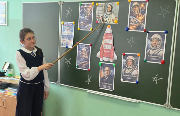 Учашиеся 1–4-х классов Ходосовской школы совершили захватывающее путешествие за пределы земной атмосферы. Учитель Ирина Алексеевна Филиппенко провела для них Единый урок, приуроченный к Международному дню полёта человека в космос.