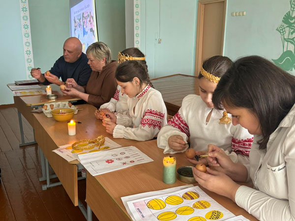 А после экскурсии было самое весёлое – мастер-класс по росписи писанок. Мы с учителями сели за столы и стали украшать яйца воском и красками. Попробовала нарисовать купальский цветок и солярные знаки – такие же, как на старинных рушниках в нашем музее. Получилось ярко и по-настоящему народно!