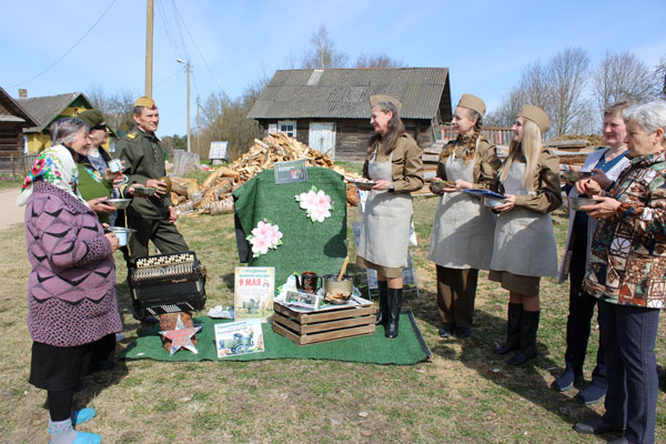 Супрацоўнікі бібліятэкі выступілі ў ролі ваенных кухараў і разгарнулі імправізаваную «палявую кухню». Жыхароў вёсак частавалі стравамі па рэцэптах ваеннага часу: салдацкай кашай – сімвал сытасці і стойкасці на фронце; салам і чорным хлебам – просты рацыён, які падкрэслівае суровасць побыту салдат; салёным агурком і цыбуляй – важная крыніца вітамінаў і сродкаў падтрымання сіл, а таксама бярозавым сокам і ўсім тым, што ратавала байцоў у акопах.