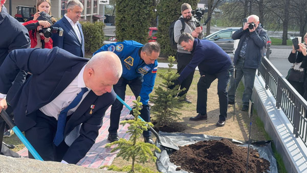 Мероприятие началось на улице, у стен Дома Москвы. Здесь космонавты приняли участие в закладке Аллеи Героев России. Они высадили молодые ели, которые стали символом памяти, связи поколений и дружбы между Россией и Беларусью.